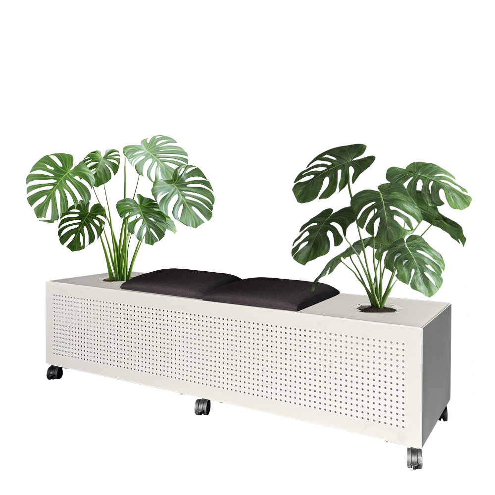Planter Caddies are versatile mobile units combining seating and planting to create relaxed, biophilic spaces. Featuring two planter sections and two seating sections, each module can be interchanged to suit different layouts.